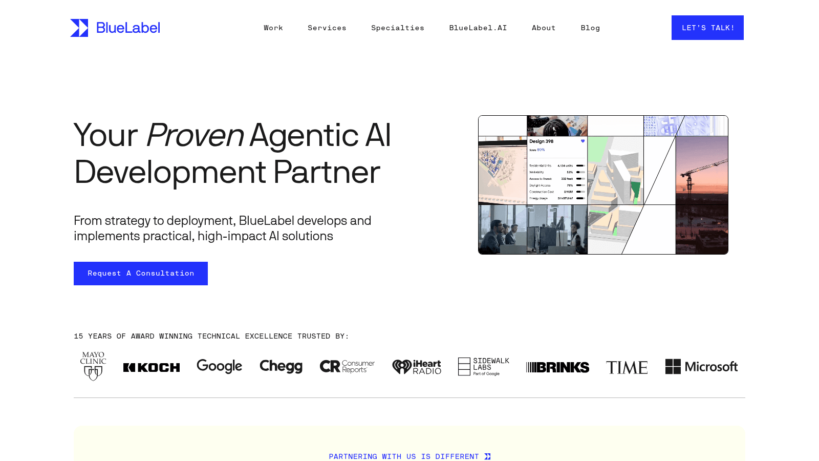 BlueLabel offers AI-driven creative and design services tailored for enterprises aiming to integrate advanced AI solutions. Their cross-industry experience supports scalable AI product development.