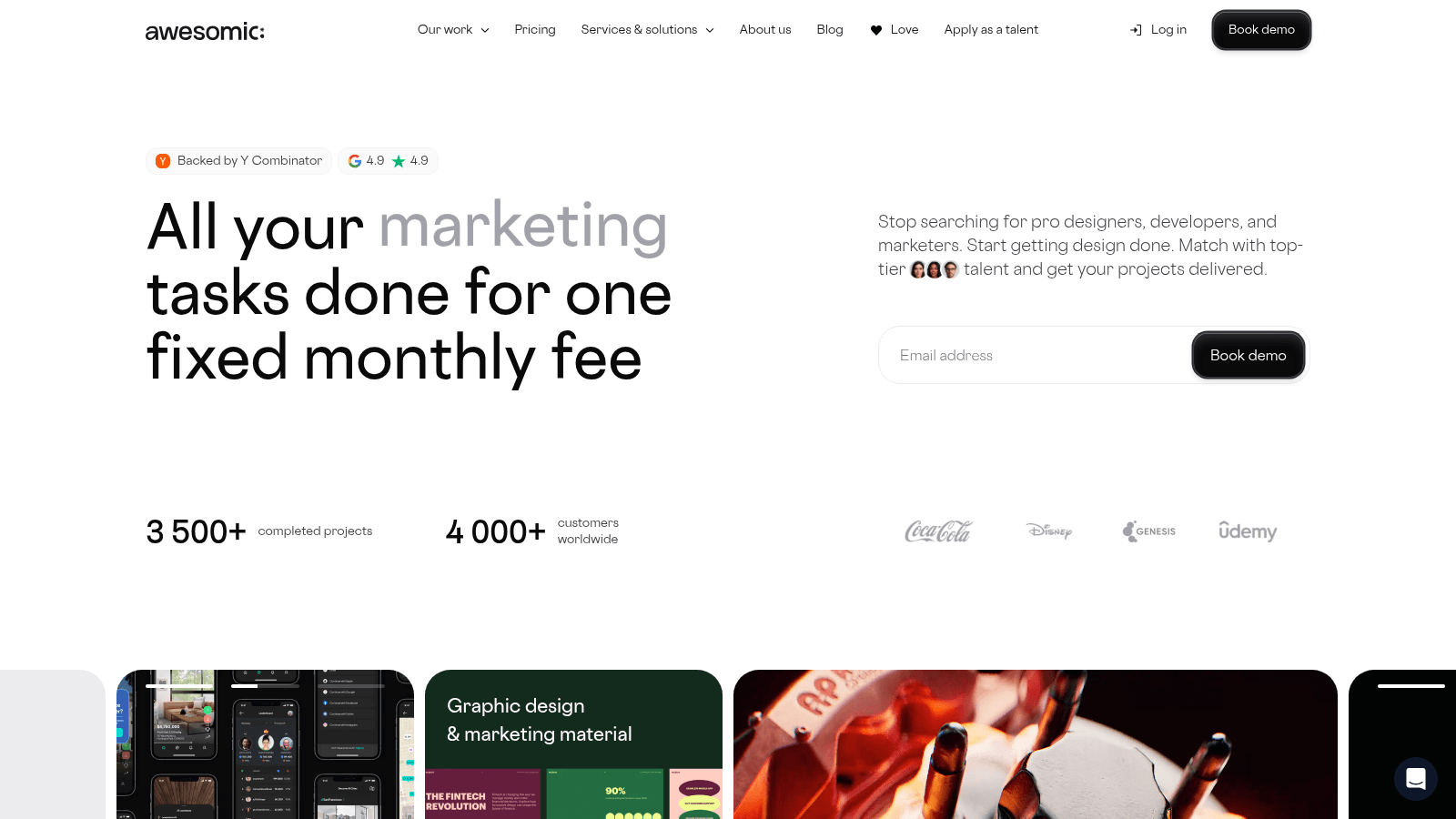 Coca-Cola, Disney, Udemy, Y Combinator startups.