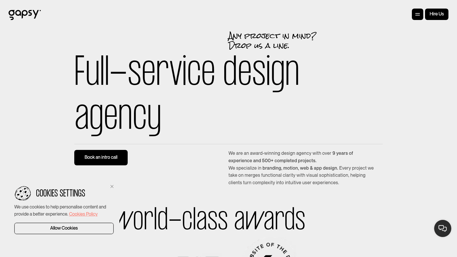 Gapsy Studio is a full-service design agency with over nine years of experience and a portfolio of 500+ completed projects. They focus on product design subscription for SaaS, offering branding, motion, web, and app design services.