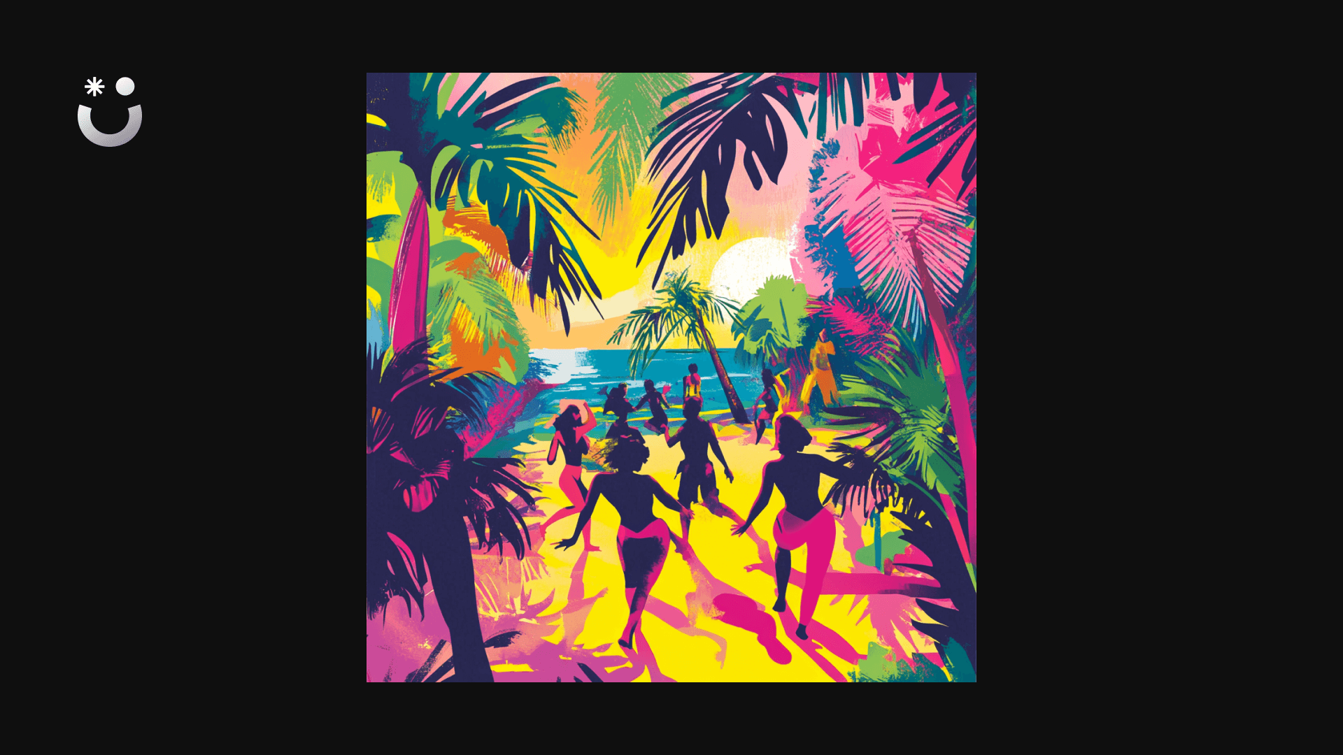 - Flyers for a festival: “Abstract festival poster, featuring a tropical beach scene, bright colors, playful font, beautiful people dancing”